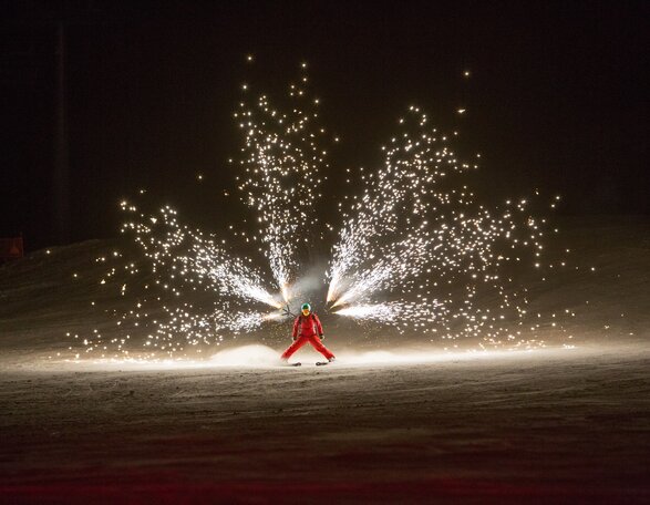 The ultimate ski demo on the Pra di Tori Slope - Passo Costa Lunga for guests of all ages in Carezza. Don‘t miss out on King Laurin and his seven dwarves, a telemark demo, spectacular freestyle tricks, a torch-lit descent, fireworks, performing piste-groomers and shows by the Karersee and Rosengarten ski schools.Free shuttle service from Nova Levante and Tires (registration in the tourist boards)!