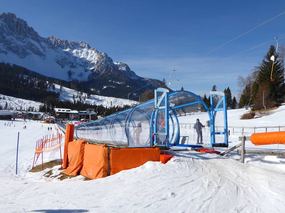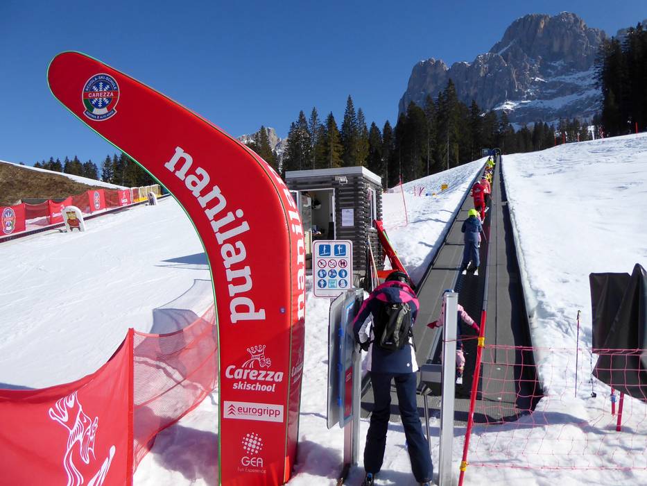 The other slopes in the Carezza ski area between König Laurin and Karerpass are served by modern chairlifts and cable cars. For beginners, there are several conveyor belts and platter lifts. Additional conveyor belts operated by local ski schools complete the offering. From St. Zyprian in the municipality of Tiers, the Tierser Cabrio cable car leads up to the Frommer Alm. However, there is no slope down to St. Zyprian.