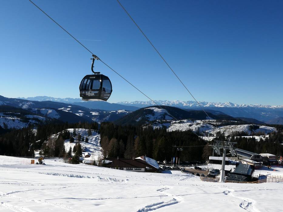 The new König Laurin 1 10-seater gondola lift in the Carezza ski area runs from the Frommer Alm to the mid-station. From the mid-station, the 2nd section continues up to the summit.