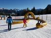 The beautiful children's area of the Vigo di Fassa ski school is located directly on the Karer Pass. With fun figures and a conveyor belt, learning is quick and easy.