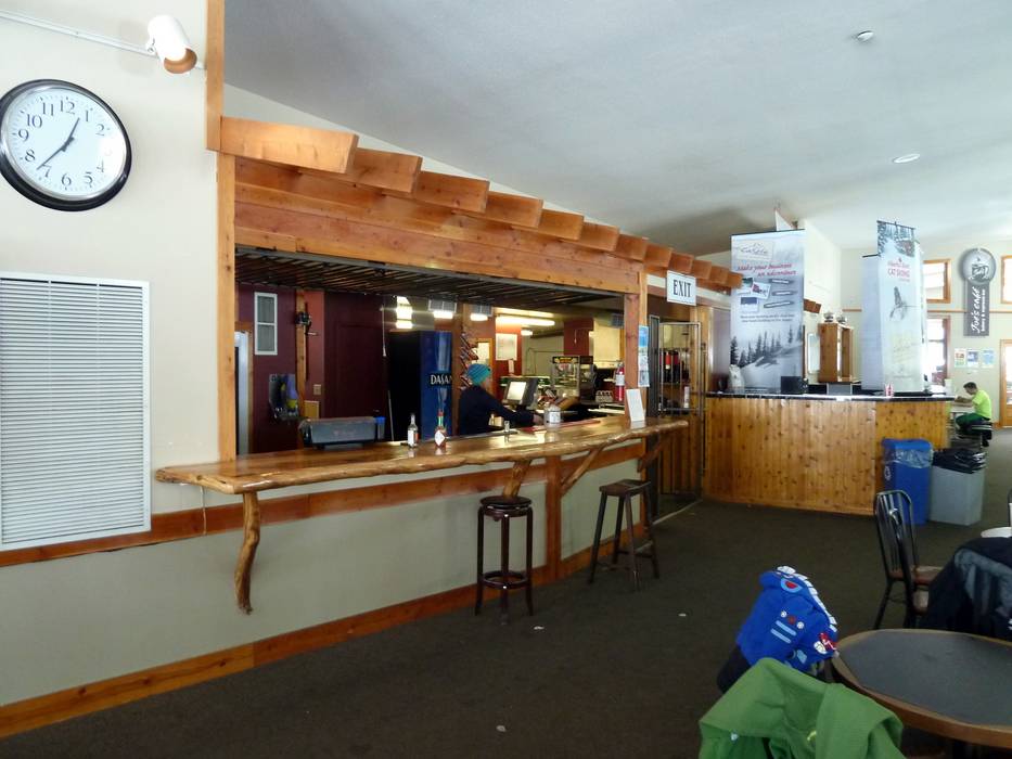 The rustic T-Bar Pub and Grill offers pizza, wings, nachos, and salads. You can warm up by the open fireplace, and in the afternoon, it transitions to après-ski.