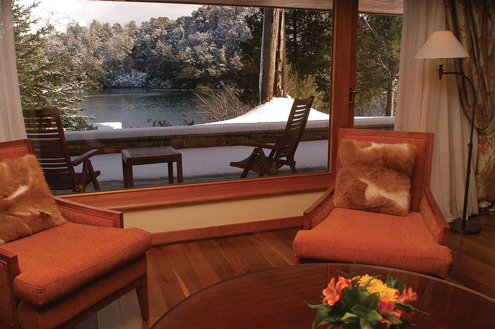 On a small hill between Lake Nahuel Huapi and Lake Moreno lies the magnificent hotel, surrounded by ancient cypresses and forests and watched over by the López mountains. This hotel was built in 1940 by architect Alejandro Bustillo and completely renovated in 1993. Constructed in the Canadian style from cypress logs, the hotel blends harmoniously into the landscape and should not be missed when visiting Argentina.
