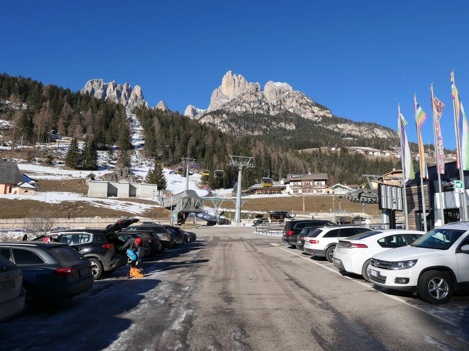 The Italian ski resort Catinaccio is located in Val di Fassa (Fassa Valley) in Trentino. Access is via mountain passes from the Brenner motorway. Exits are Bozen Nord (coming from the north) or Neumarkt-Auer-Tramin (coming from the south). Entry points are in Vigo di Fassa and Pera di Fassa. The free parking spaces in Pera di Fassa are located around the valley station. In Vigo di Fassa, direct parking spaces are limited. Here, you can conveniently reach the valley station of the cable car from the town center via an escalator.