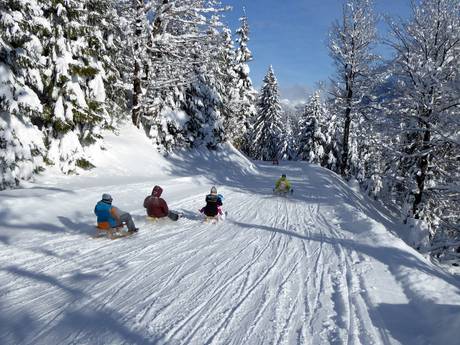 Families feel very comfortable at Christlum. The Christlum Dino Park, large children's areas run by the ski schools, practice lifts, and a toboggan run await families. Easy slopes can be found at the Mosen drag lift and at the DinoJet. Advanced children can also easily master the intermediate South Run down to the valley. On weekends, there are special discounts for families.