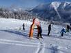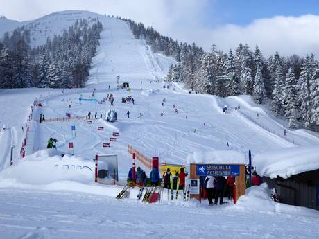 The Achensee Ski School operates a practice area with a conveyor belt at the valley station and a children's practice area at the mid-station. The highlight of the ski course is a weekly professional children's ski race.