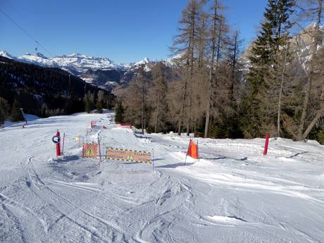The Alleghe Boardercross runs along the Pelmo slope and offers banked turns and waves. It is also very well suited for families with children.