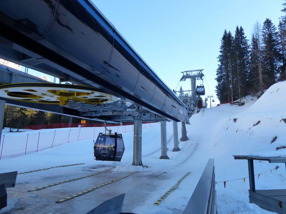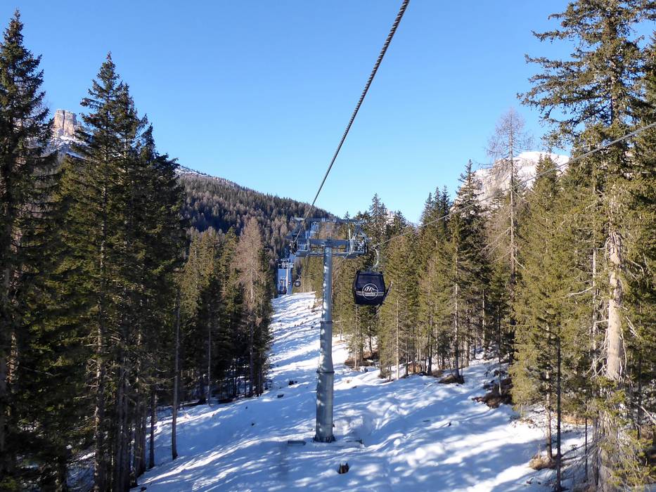 The new 10-seater gondola lift Son dei Prade-Cianzopè-Bai de Dones connects the Tofane and Cinque Torri ski areas. The gondola runs from the valley station above Pocol via the mid-station Cianzopè to the mountain station Bai de Dones. This long-planned, modern lift system improves the connection between the spectacular 5 Torri and Cortina d'Ampezzo, which until now could only be reached by road via Passo Falzarego.