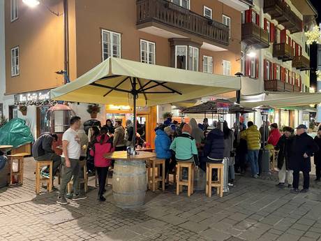 In general, things are quieter in Cortina d'Ampezzo. You won't find umbrella bars or loud après-ski parties. Instead, people end their ski day in a relaxed atmosphere at the mountain huts. At the Socrepes valley station, Chalet Tofane offers music and a lively atmosphere on weekends. In the town of Cortina d'Ampezzo, charming bars in the pedestrian zone invite you to unwind.