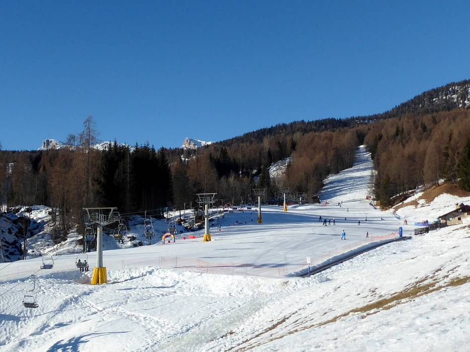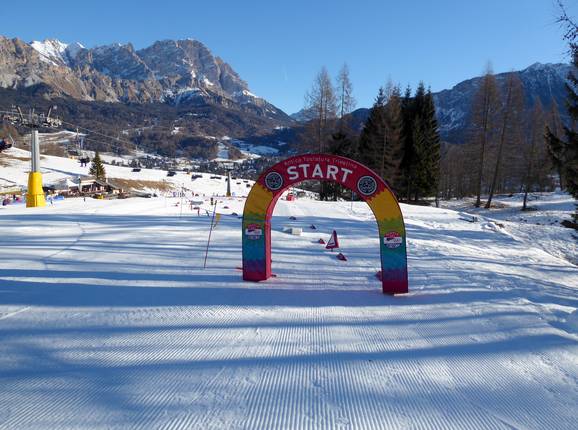 Cortina d'Ampezzo is family- and child-friendly. In the Socrepes valley area, there is the children's slope with its own double chairlift and conveyor belt. Thanks to the many easy slopes near the valley, little ones can have fun safely. In the ski area itself, however, there are hardly any facilities for families and children.