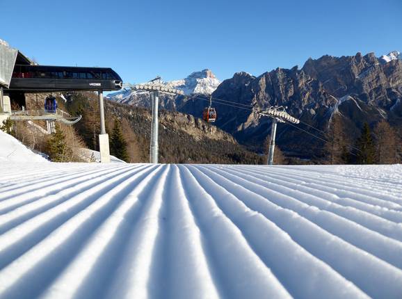 In the Cortina d'Ampezzo ski area, the slopes are optimally groomed every night. As a result, the slopes are in impeccable condition.