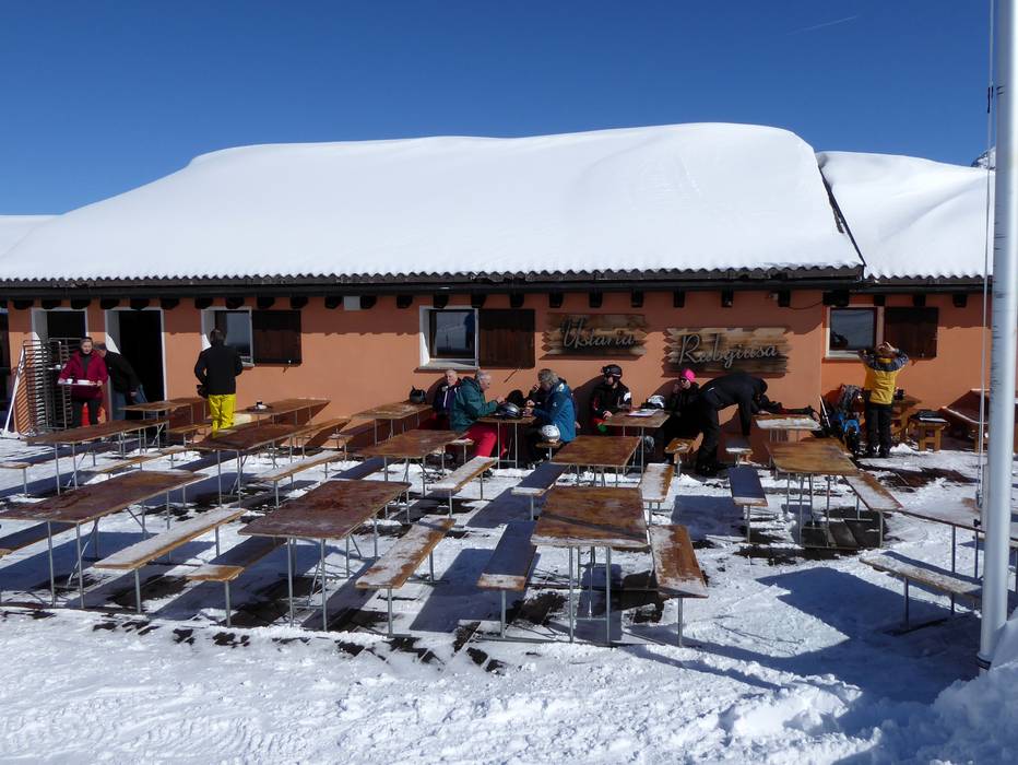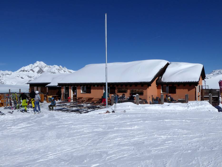 The kitchen is known for its piadine, the thin Italian flatbread, as well as pizza and pasta. The idyllically located ski hut also boasts a large, wind-protected sun terrace.