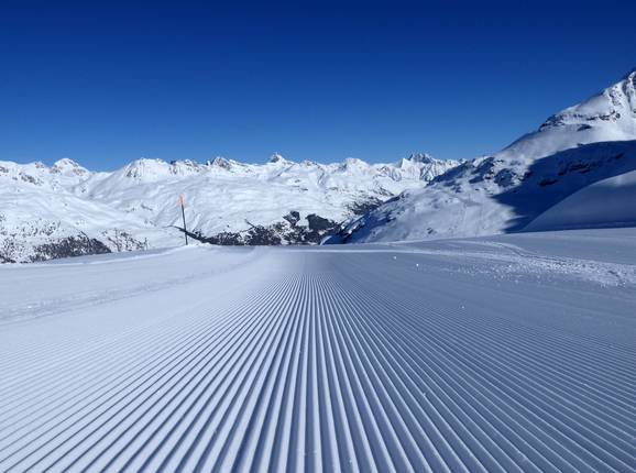 The entire ski area is freshly groomed every night. The slopes are in top condition. The Corvatsch Park (snowpark) is also perfectly groomed. Before every Snow Night (night skiing), the valley run is freshly groomed as well, so a perfect slope awaits you at night.
