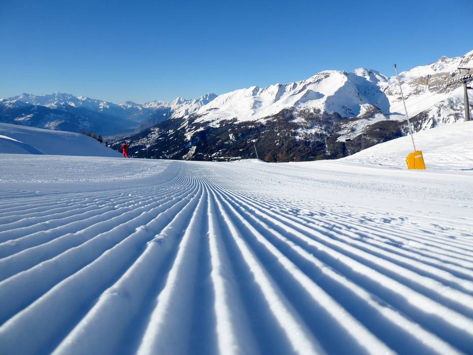 Crans-Montana is located on a sunny plateau high above the Rhône Valley. The ski area in the French-speaking part of Valais offers slopes for all levels of difficulty. The highest point in the winter sports area lies just below the summit of Plaine Morte (2,927 m). The slopes are mainly accessed
