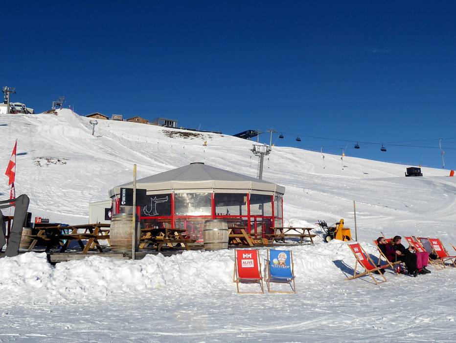 On weekends, you can end your ski day at La Yourte. Sun loungers are available when the sun is shining.