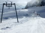 T-bar lift/platter/button lift at the ski resort Dachstein Glacier (Dachsteingletscher)