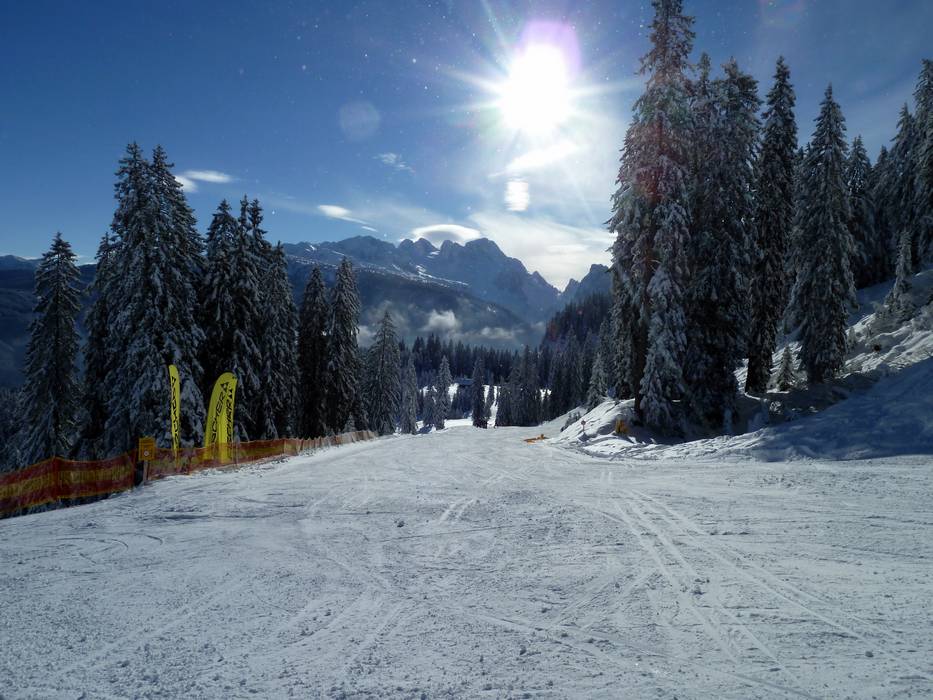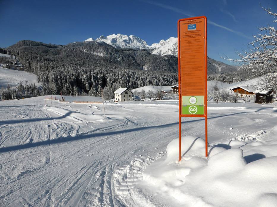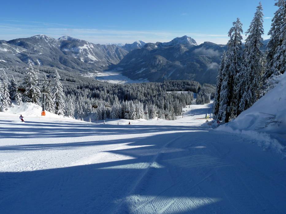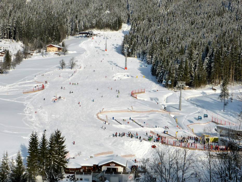The Dachstein West ski area stretches between the towns of Russbach, Gosau, and Annaberg. In the winter sports region of the breathtaking Dachstein mountains, the focus is on offering more than just skiing. Numerous piste highlights and snow parks for beginners and advanced skiers provide