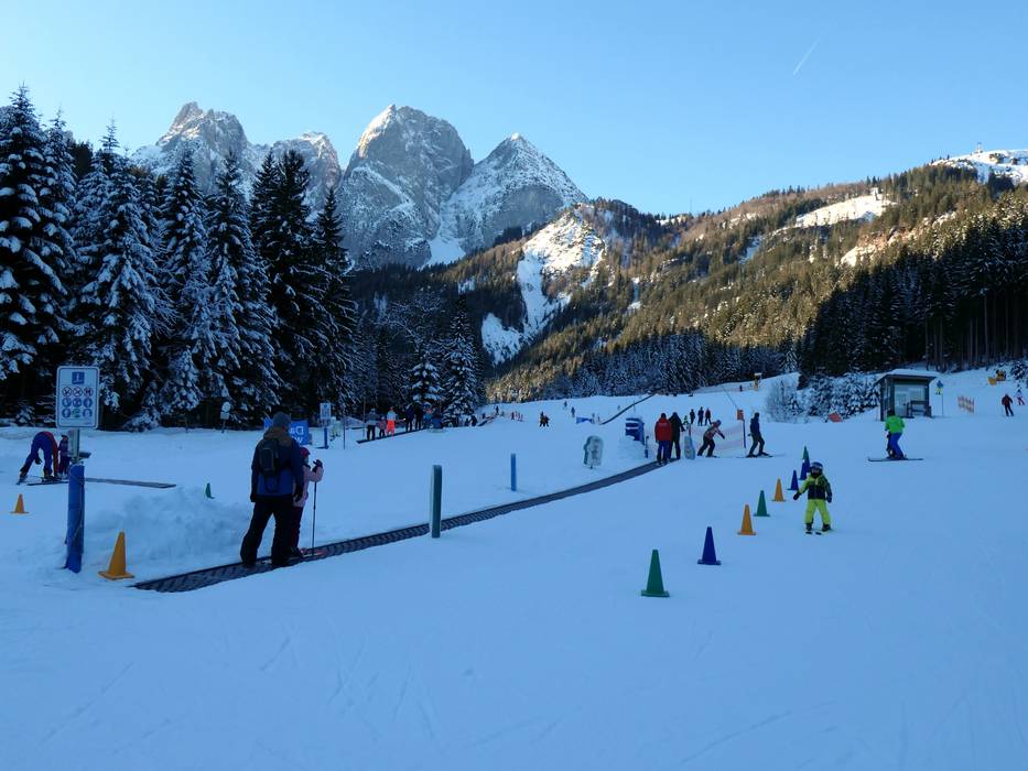 In Fredy-Land, located right at the valley station of the Hornspitzbahn in Gosau, children feel completely at home. It is the largest children's area in the Dachstein West ski region and offers conveyor belts, slalom courses, and many fun figures.
