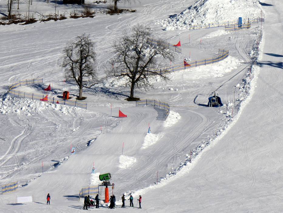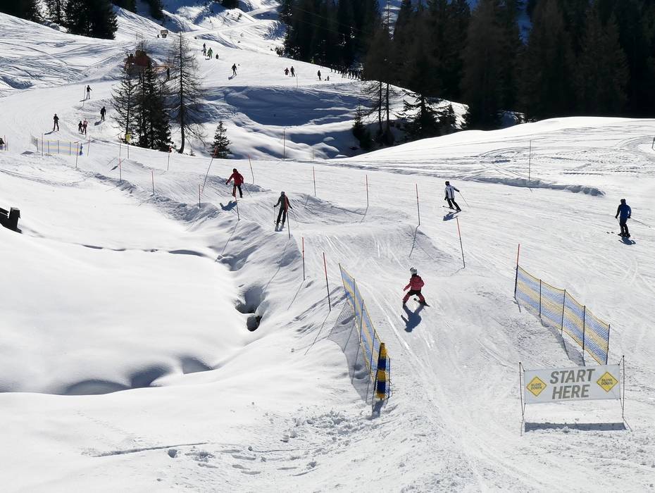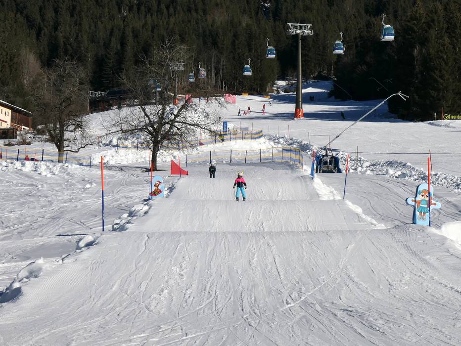 The snow park is fun for the whole family. In a sunny location, the obstacles and jumps are designed for families.