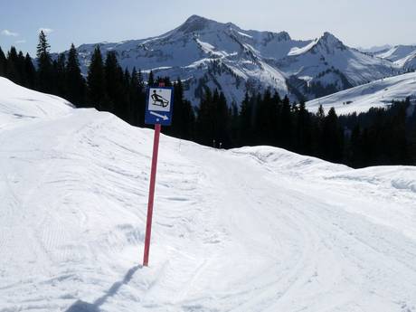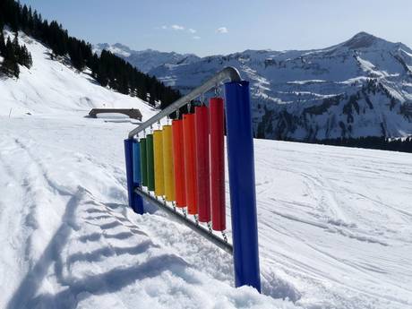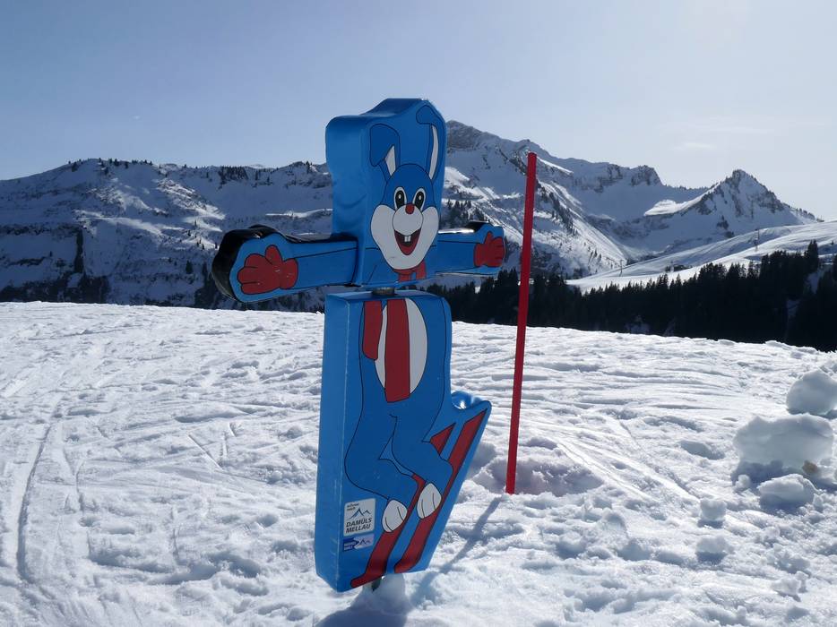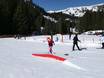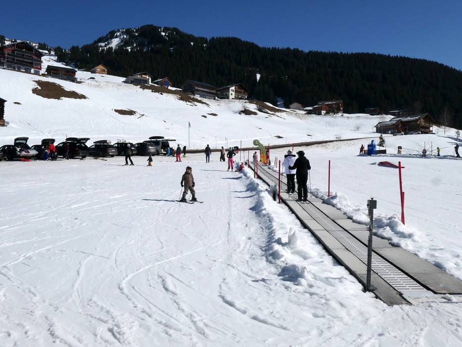 Near the valley station of the Sunneggbahn, there is a large practice area with several magic carpets. One of them is covered. There is plenty of space here and fun figures for the little ones. At the Sunnegg practice lift, you can then easily progress.