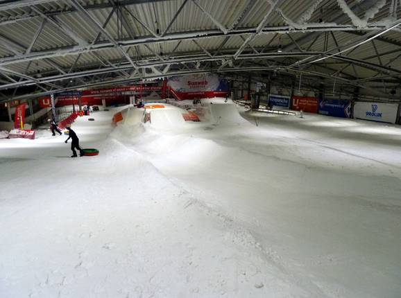 Right next to the ski hall, children will find bouncy castles, a trampoline, and play equipment. The Kidszone is located between the ski hall and the artificial ice rink.
