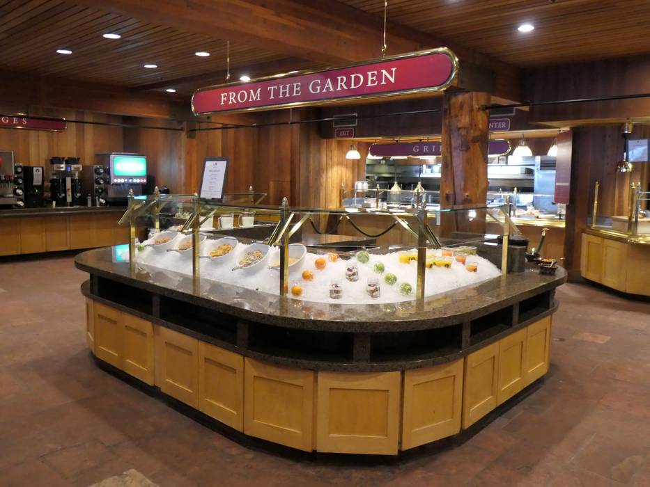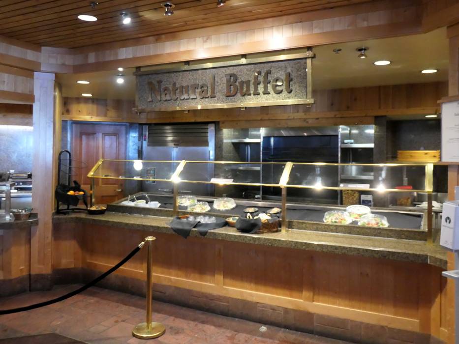 The large restaurant Empire Canyon Grill offers a variety of high-quality dishes in both indoor and outdoor areas with self-service.