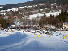 The Destné ski resort offers a varied range of slopes with easy runs for beginners, solid intermediate trails, and some more challenging slopes for advanced skiers. The resort is complemented by a snow park and the option of night skiing, making it attractive to a wide variety of skiers. The slopes are well-groomed and, thanks to modern snowmaking, are usually reliably skiable.