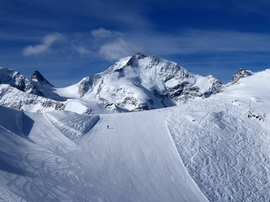 The ski resort Diavolezza/Lagalb is located in the Val Bernina (Switzerland, Eastern Switzerland, Graubünden, Engadin St. Moritz).