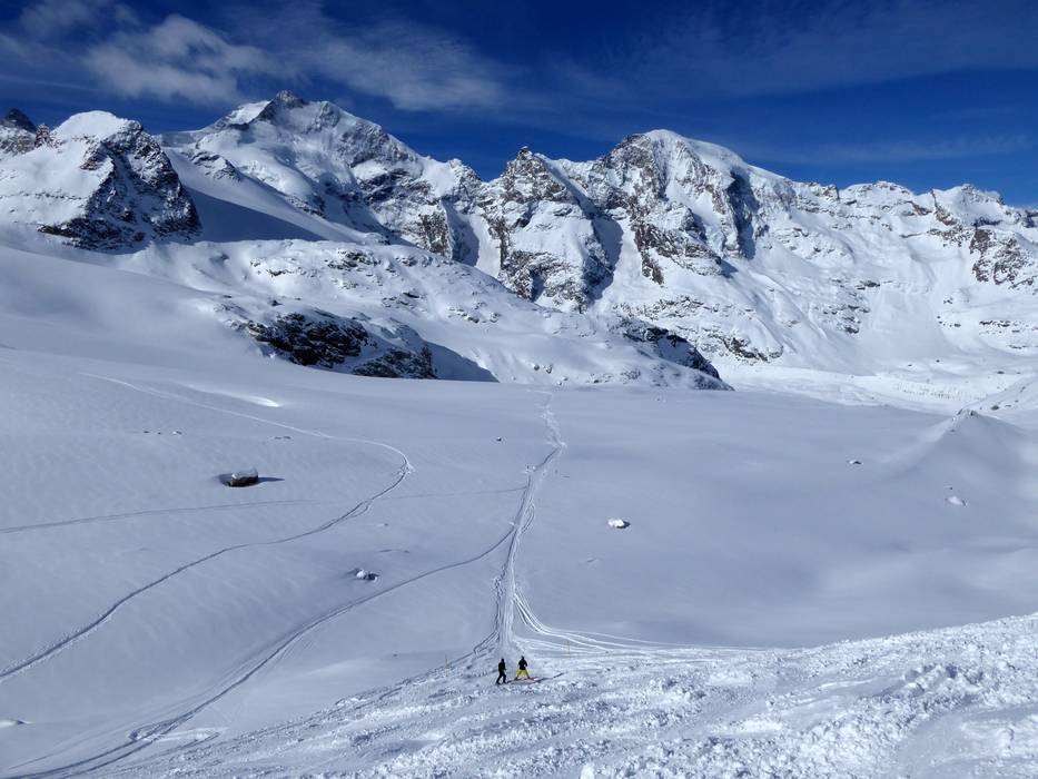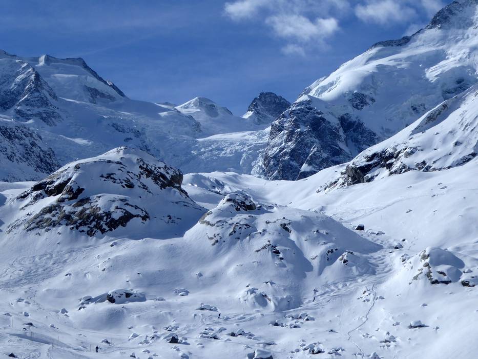 The ski area is a paradise for experts and athletic enthusiasts. You won't find any easy slopes here. The only exception is a short practice slope. The two ski mountains, Diavolezza (the she-devil) and Lagalb (the white lake), offer long runs and many off-piste powder options. If you enjoy tackling intermediate and advanced slopes with more than 800 meters of vertical drop, or want to experience a 10 km glacier run over the Morteratsch Glacier, this is the place for you. The glacier run is the longest of its kind in Switzerland and an absolute highlight. Against a spectacular backdrop with views of Piz Bernina (4049 m) and Piz Palü (3900 m), you ski 10 km through a wilderness of snow and ice. Another special feature is skiing by full moon on the Diavolezza. The connection between the ski mountains Lagalb and Diavolezza is only possible on slopes in the direction of Lagalb. In the opposite direction, the ski bus operates.