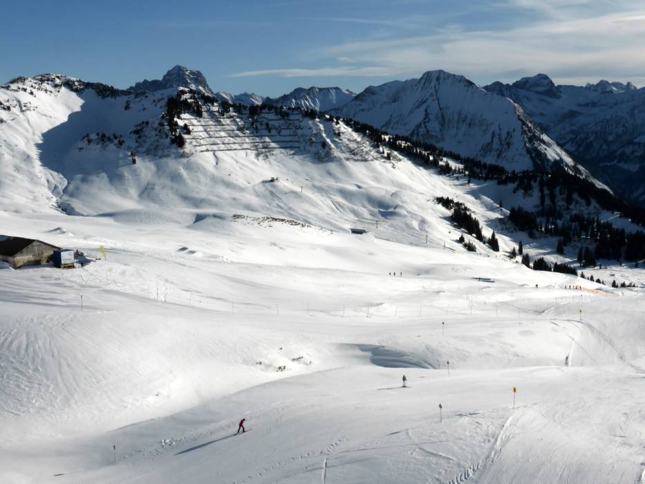The ski resort Diedamskopf – Schoppernau is located in the Bregenzerwald (Austria, Vorarlberg, Bregenz). For skiing and snowboarding, there are 40 km of slopes available. 9 lifts transport the guests. The winter sports area is situated between the elevations of 820 and 2,060 m.