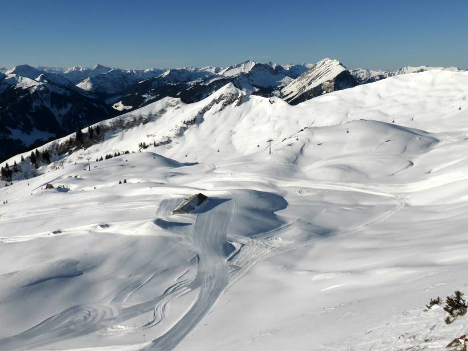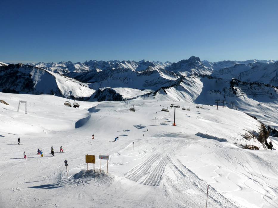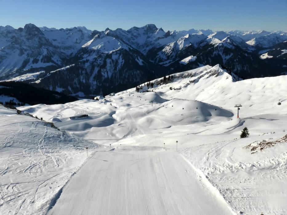 The Deidamskopf awaits its guests with the highest mountain lift station in the Bregenzerwald (2060 m), 40 km of diversified slopes and a sensational view of the unique 300 peak Lake Constance panorama. The valley run delivers pure enjoyment to sporty skiers. It's 10 km in length and covers over read moreThe Deidamskopf awaits its guests with the highest mountain lift station in the Bregenzerwald (2060 m), 40 km of diversified slopes and a sensational view of the unique 300 peak Lake Constance panorama. The valley run delivers pure enjoyment to sporty skiers. It's 10 km in length and covers over 1200 vertical meters from the peak of the Diedamskopf to the valley. The Pleasure Diedamspark is a real highlight in the region for freestylers and snowboarders. The Diedamskopf is also a perfect destination for a truly enjoyable experience without skis. There are plenty of alternatives offered for winter hikers, sun worshipers, para-gliders and hang-gliders. Refreshments and food are served in four different mountain restaurants on the Diedamskopf. You can really savor the variety of delicacies and regional specialties while enjoying the fantastic view on one of the large sun terraces.