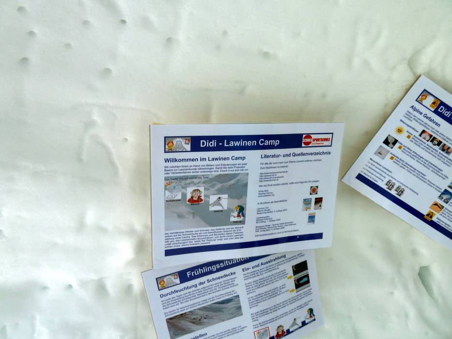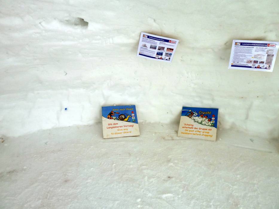 In Didi's igloo, safety topics are explained. It covers both general slope safety and more specialized knowledge on the boards from the Didi Avalanche Camp.