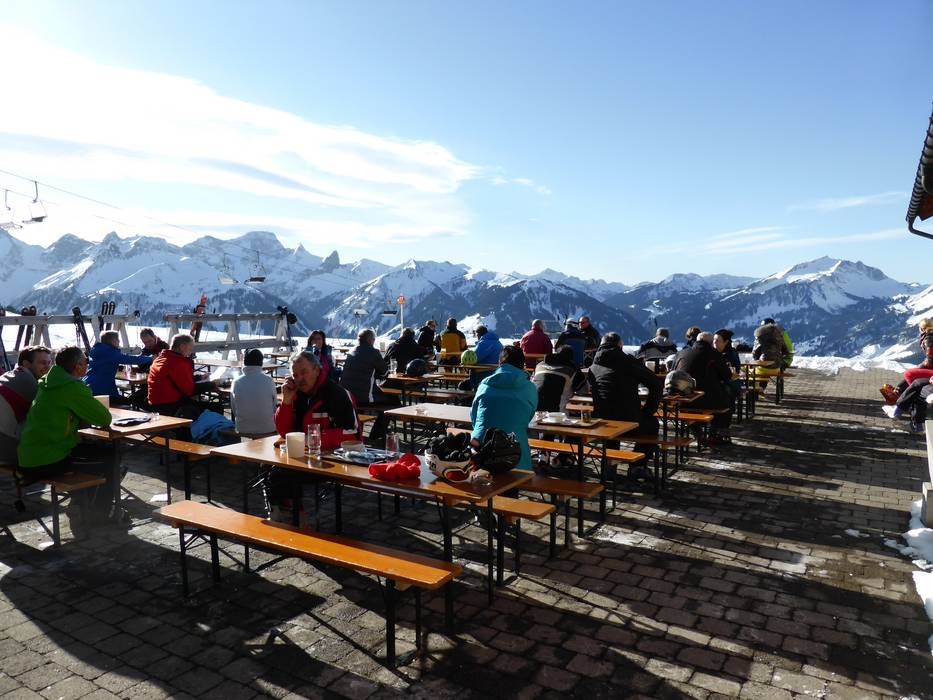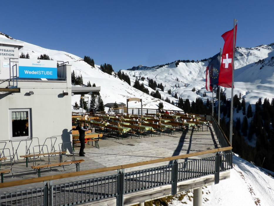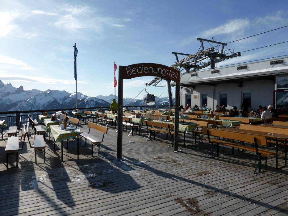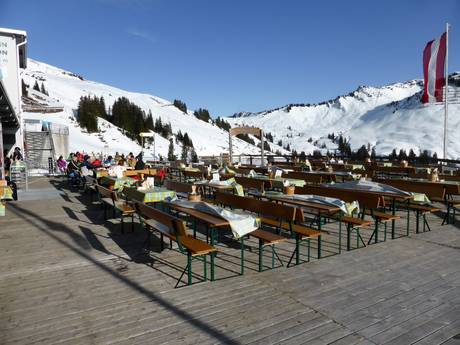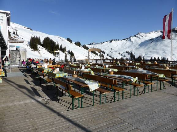 In the Schoppernau/Diedamskopf ski area, there are three mountain restaurants and two in the valley. The mountain restaurants are well-maintained and offer plenty of space. From the terrace of the self-service Panorama Restaurant, you have a magnificent view of the peaks.
