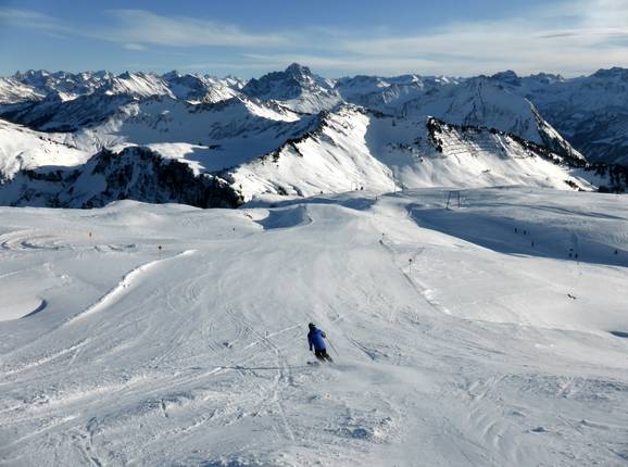 At Diedamskopf, everyone can find the right slope. The pistes are generally quite wide, so you won't get in anyone's way. Most of the pistes are located above the tree line, offering a magnificent view of the surrounding mountain scenery.