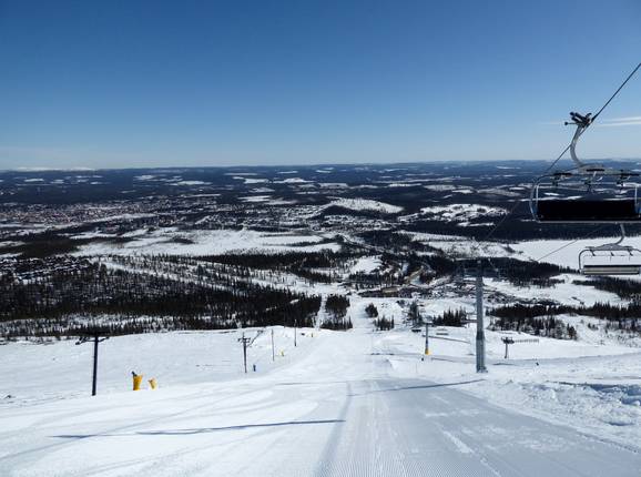 In the Dundret Lapland ski area, a few challenging slopes await advanced skiers. Additionally, the open ski terrain with its deep-snow runs is impressive. Here, almost the entire mountain face can be skied.