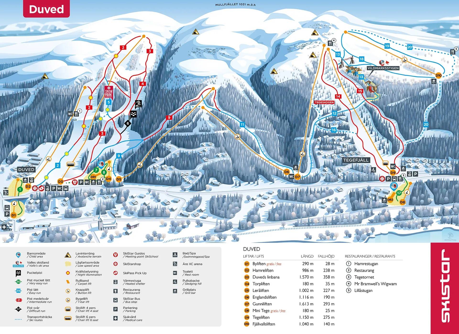 Duved (0.2 km), Tegefjäll (0.1 km), Åre (7 km) Towns/villages at the ski resort