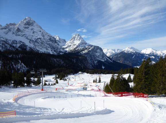 The ski resort Ehrwalder Alm – Ehrwald is located in the Tiroler Zugspitz Arena (Austria, Tyrol (Tirol), Außerfern).