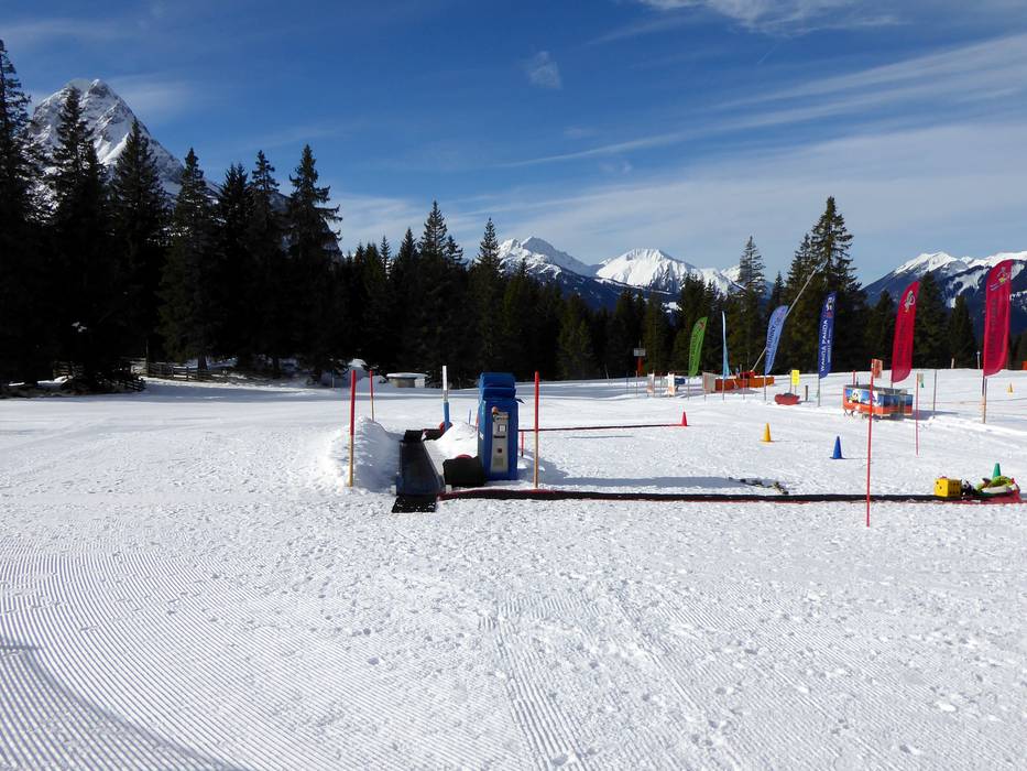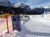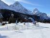 Dedicated area with rope lift on the Ehrwalder Alm. Here, parents can take the cable car up the mountain even as non-skiers and watch their little ones make their first turns.