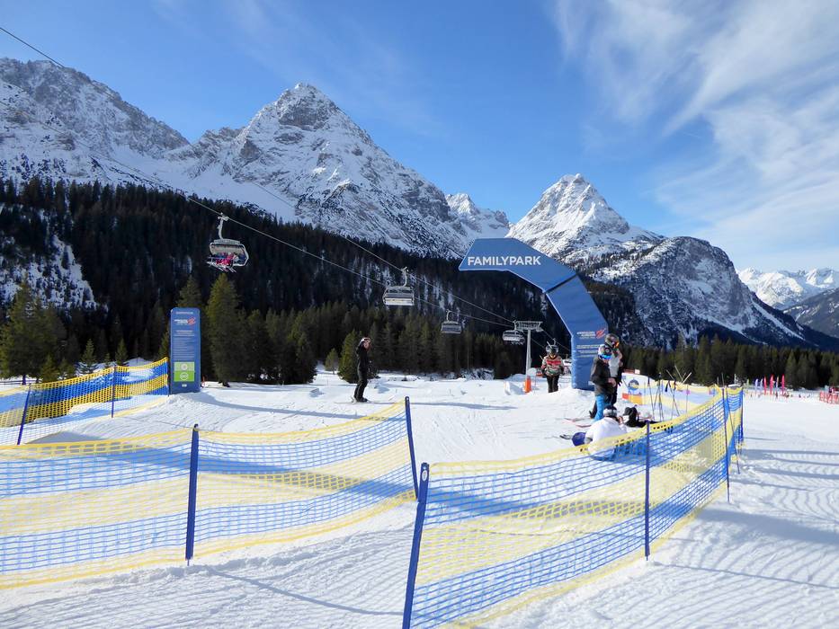The Family Park on the Ehrwalder Alm is specially designed for children and families and is located below the 6-seater chairlift Issentalkopf. Small jumps, rails, and varied elements offer fun and play for first attempts—ideal for learning to snowboard or ski safely and with lots of enjoyment.