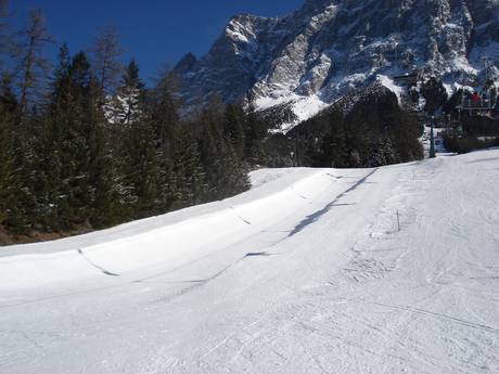 In the Gamskar area, there is the Kidspark with various kickers and obstacles. At the Wettersteinbahn in the valley, a kids' halfpipe is prepared when there is sufficient snow.