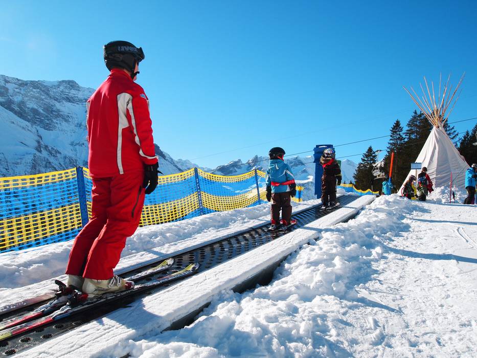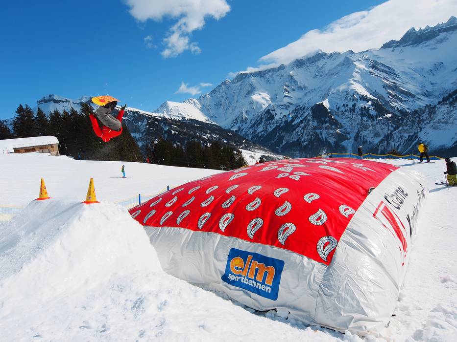 The Children's Arena is situated right next to the Ämpächli Mountain Restaurant in a sunny location. Two magic carpets, arches, flags and other fun equipment help your child learn snow sports in a playful way at their own place.New: GLKB BigAirBAG
