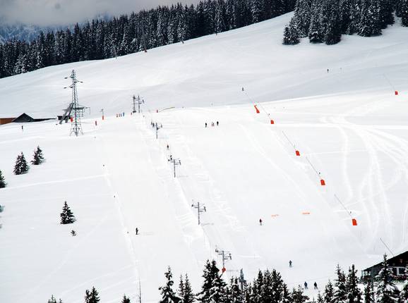 It’s hard to imagine a ski mountain better suited for beginners than Mont Bisanne: it has gentle slopes, open terrain, and wide runs that end in equally gentle inclines. There are no drop-offs, no rocks—nothing here that could be intimidating. The chalets of Les Saisies are clustered around the slopes, meaning short distances—another advantage on the way to becoming a ski pro. Of course, beginners would also be happy with a smaller ski area, but thanks to the points cards, you only pay for the lifts you actually use. Once you’ve mastered the basic turn, almost the entire Espace Diamant is open to you, since all villages—except for Hauteluce and Flumet Les Seigneurs—are accessible via easy runs.