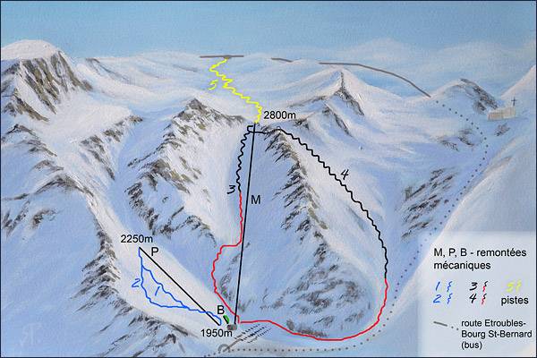 Trail map Espace Super Saint-Bernard – Bourg-St-Pierre Season ---- !!! closed temporarily/vorübergehend außer Betrieb