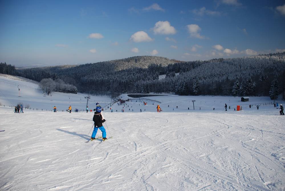 The Fahlenscheid ski area is located on the southwestern edge of the Sauerland region. It is one of the closest snow-covered winter sports areas for residents of the metropolitan area between Bonn and Düsseldorf. The easy and intermediate ski slopes are served by drag lifts. A practice area with a conveyor belt is available for beginners and children. A floodlight system extends the fun in the Fahlenscheid ski area into the evening. Tobogganing and snow tubing offer variety from alpine skiing.