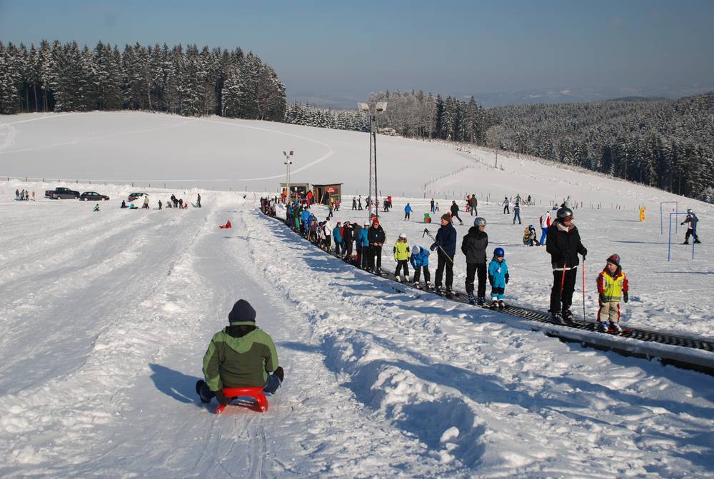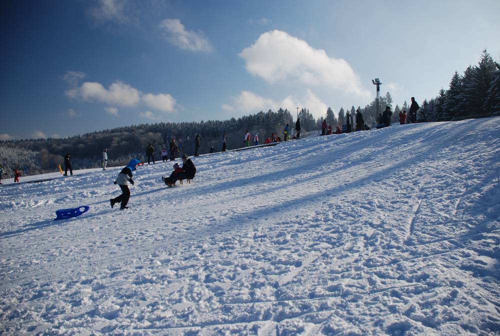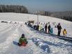 Separate from the main slopes, near the parking lot, is the children's and beginners' area with its own conveyor belt, toboggan run, tubing tracks, children's course, and practice slope, which is not reserved exclusively for the ski school. During the Christmas holidays, lunchtime childcare is also offered. The toilet situation is not ideal, and a warming hut would also be desirable.