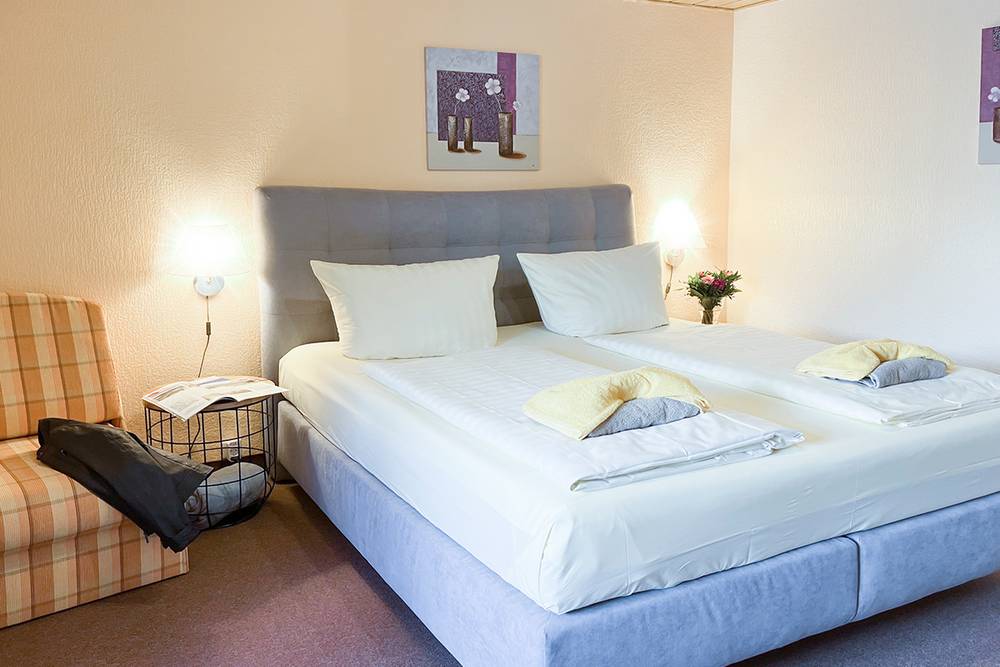 Lovingly furnished rooms create a cozy atmosphere. The rooms are equipped with a shower, toilet, telephone, large flat-screen TV, sitting area, and wardrobe.