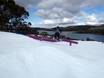 Several snow parks are spread throughout the Falls Creek ski area: Drovers Fun Boxes (Small), Fox Trail (Small), Panorama Park (Small/Medium), Castle Terrain Park (Large/Extra Large).