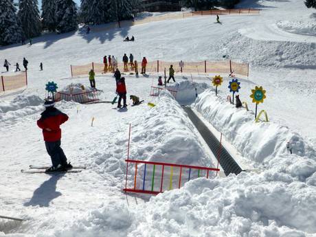 The Thoma Ski School operates a large children's practice area at Seebuck. Ski courses are offered for children from the age of three and snowboard courses for children from the age of eight. There is also affordable lunchtime supervision. Two conveyor belts and two rope lifts are available for practice.