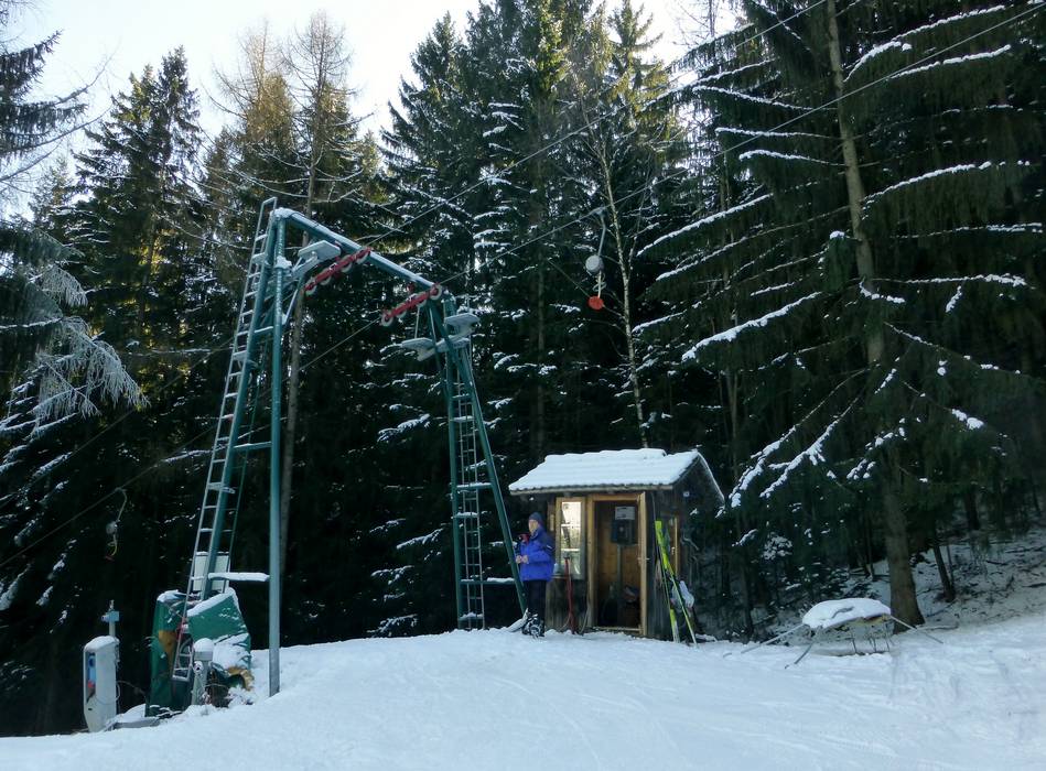 T-bar lift/platter/button lift at the ski resort Feldthurns (Velturno)