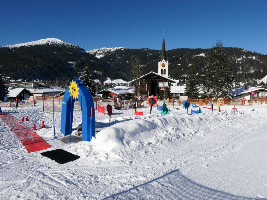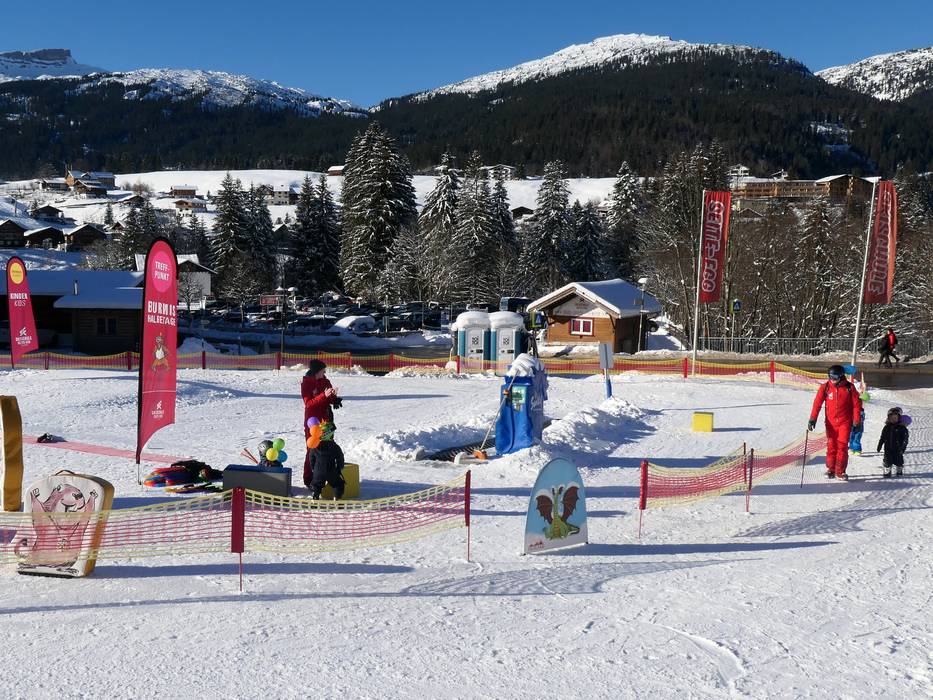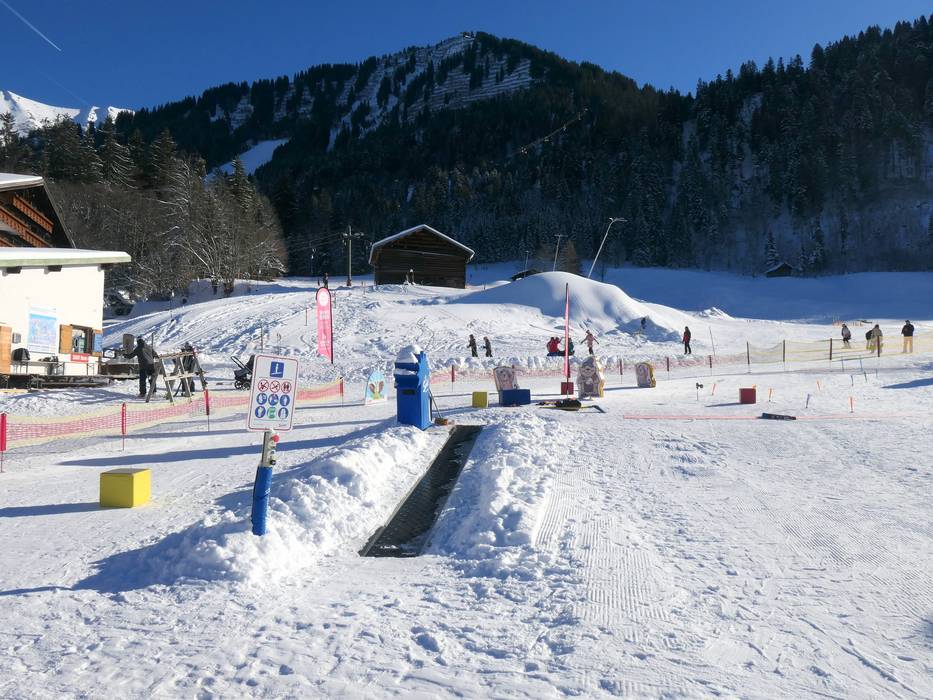 The well-equipped children's area of the ski school is located in Riezlern between the Kanzelwand valley station and the Schwandlift.