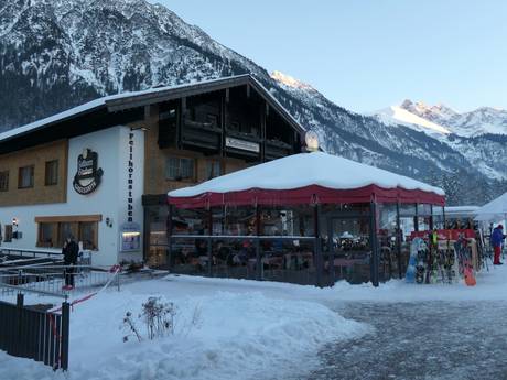 Stop for a break in Austria or Germany – in this cross-border ski area, you have the choice. Traditional mountain huts such as Obere Alpe Bierenwang, Schwendhütte (s’ Urbar), and Adlerhorst offer authentic hospitality. At the mid and mountain stations, you’ll find large self-service restaurants with spacious sun terraces. At the valley station of the Fellhornbahn, restaurants are waiting for you.